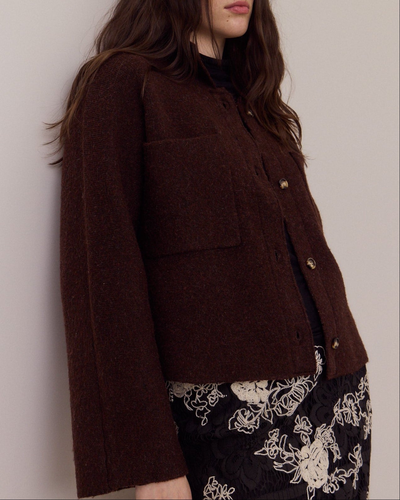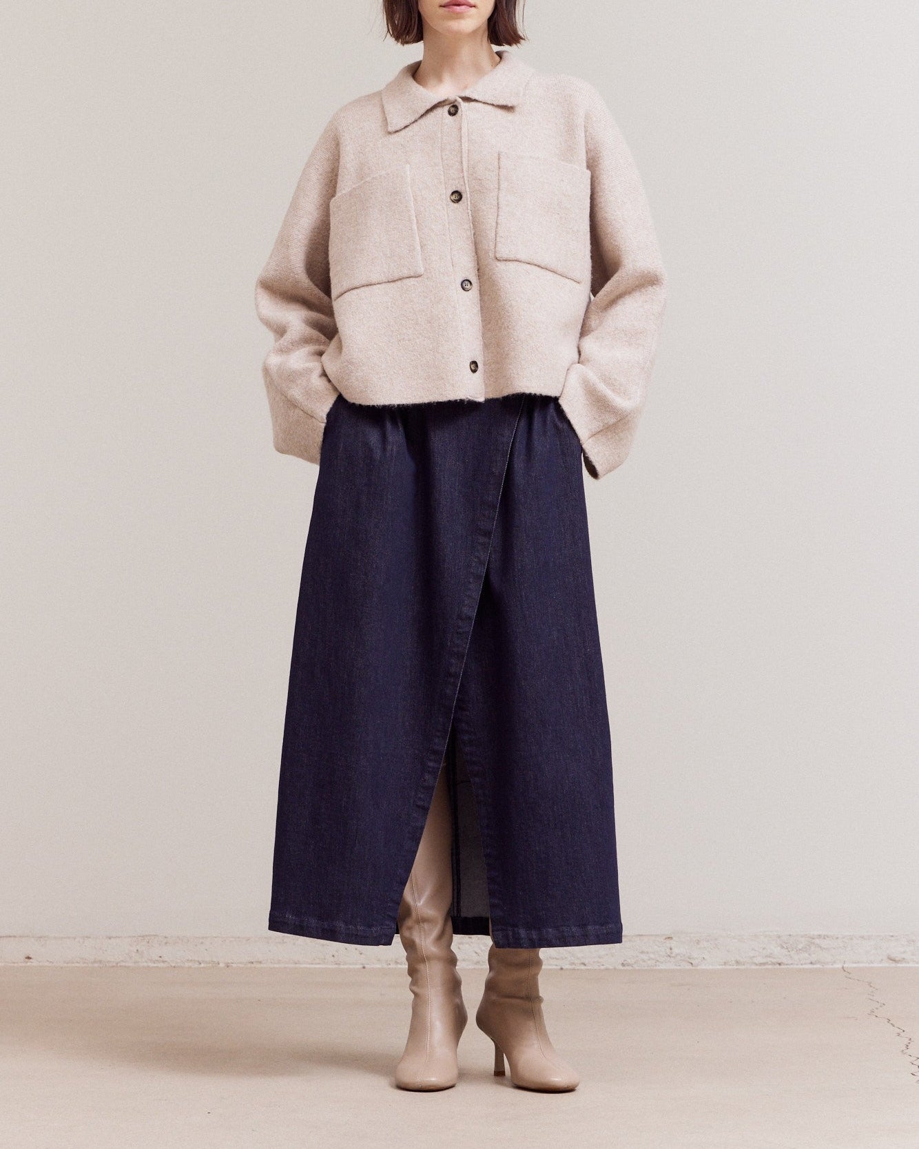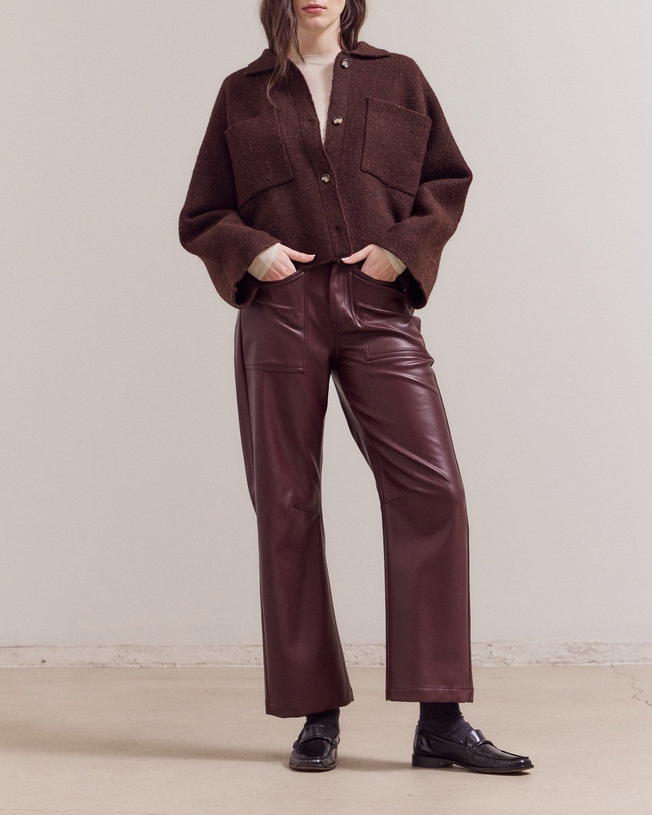 The perfect mix of cozy and structured. This cropped sweater coat features a soft knit feel with front pocket detailing and a tailored silhouette that layers effortlessly. Chic enough for dinner, cozy enough for everyday — it’s your go-to throw-on-and-look-put-together piece.