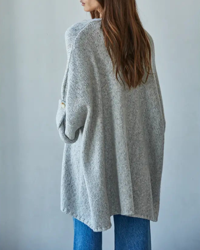 An easy layering essential, this open-front cardigan is designed with folded quarter sleeves and a relaxed silhouette for effortless wear. Crafted in a soft knit blend of acrylic, cotton, and polyester, it offers the perfect balance of comfort and versatility—your go-to piece for year-round styling.
