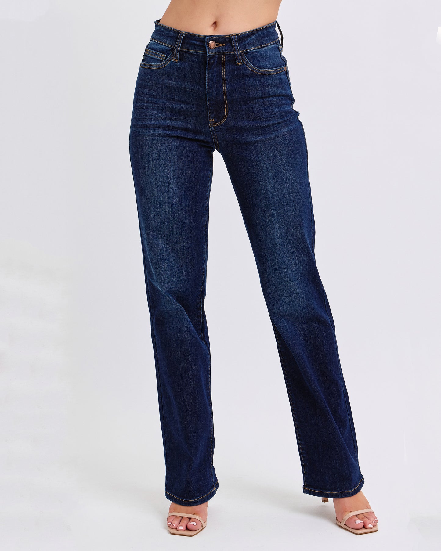 Classic, comfortable, and endlessly wearable — the High Waisted Straight Jeans by Judy Blue offer the perfect blend of structure and stretch. Designed with a flattering high rise and a straight leg silhouette, this pair moves with you while maintaining its shape. The soft, flexible fabric and timeless wash make them a staple you’ll reach for day after day.