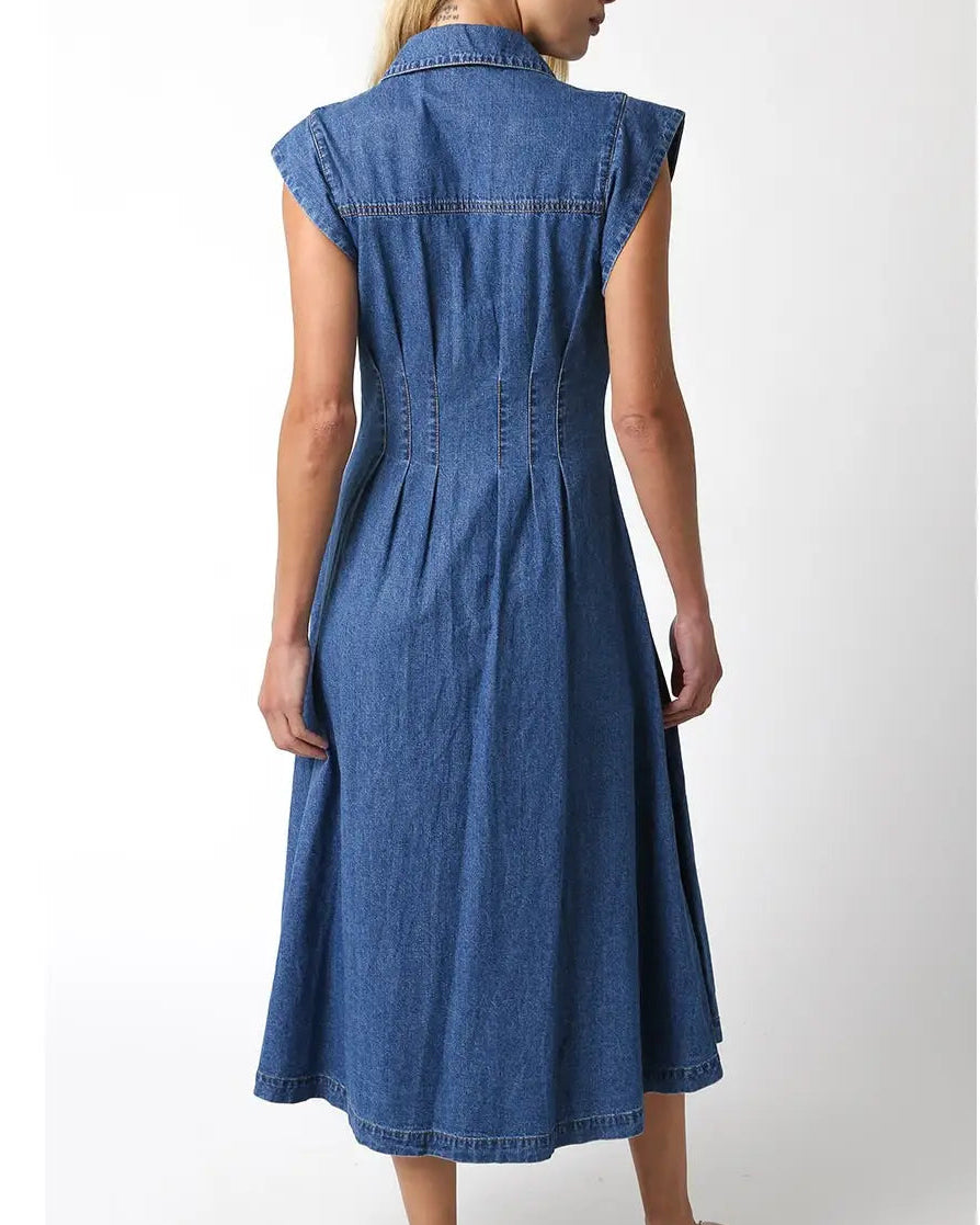 The Blair Denim Dress is your effortlessly polished denim moment — made from lightweight, soft-textured cotton for an easy, all-day feel. Featuring a button-down front and a flattering ruched waist, this silhouette brings a feminine touch to classic denim.