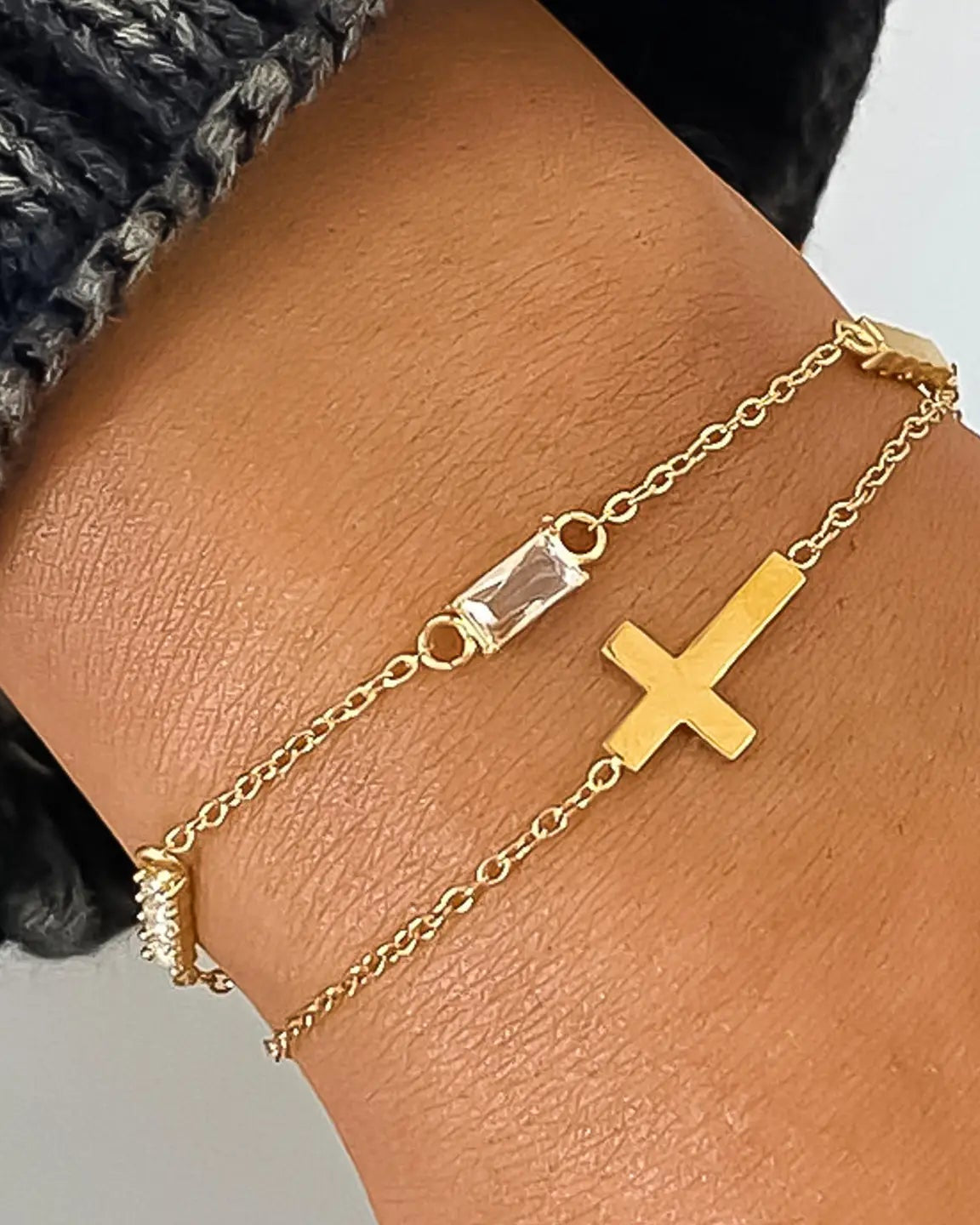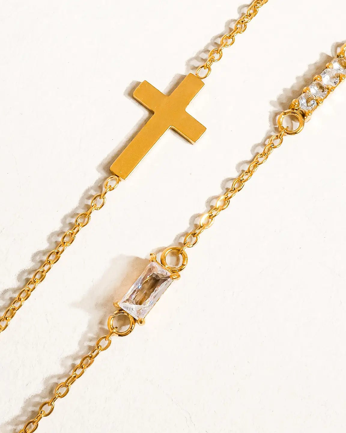 Add Esther 18K Gold Non-Tarnish Layered Cross Cz Bracelet to the cart