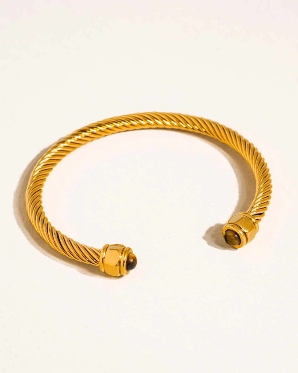 Add Vail 18K Gold Non-Tarnish Stone Braided Bangle to the cart