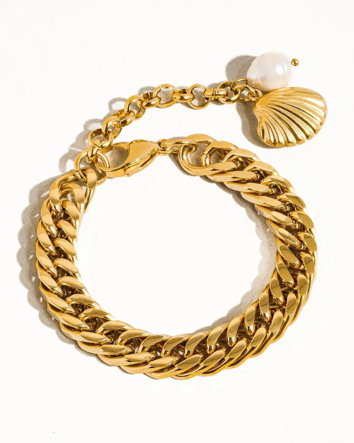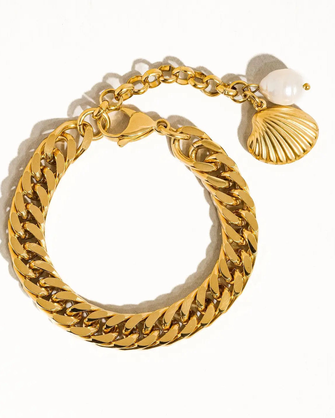 Add Tossa 18K Gold Non-Tarnish Shell Pearl Chain Bracelet to the cart