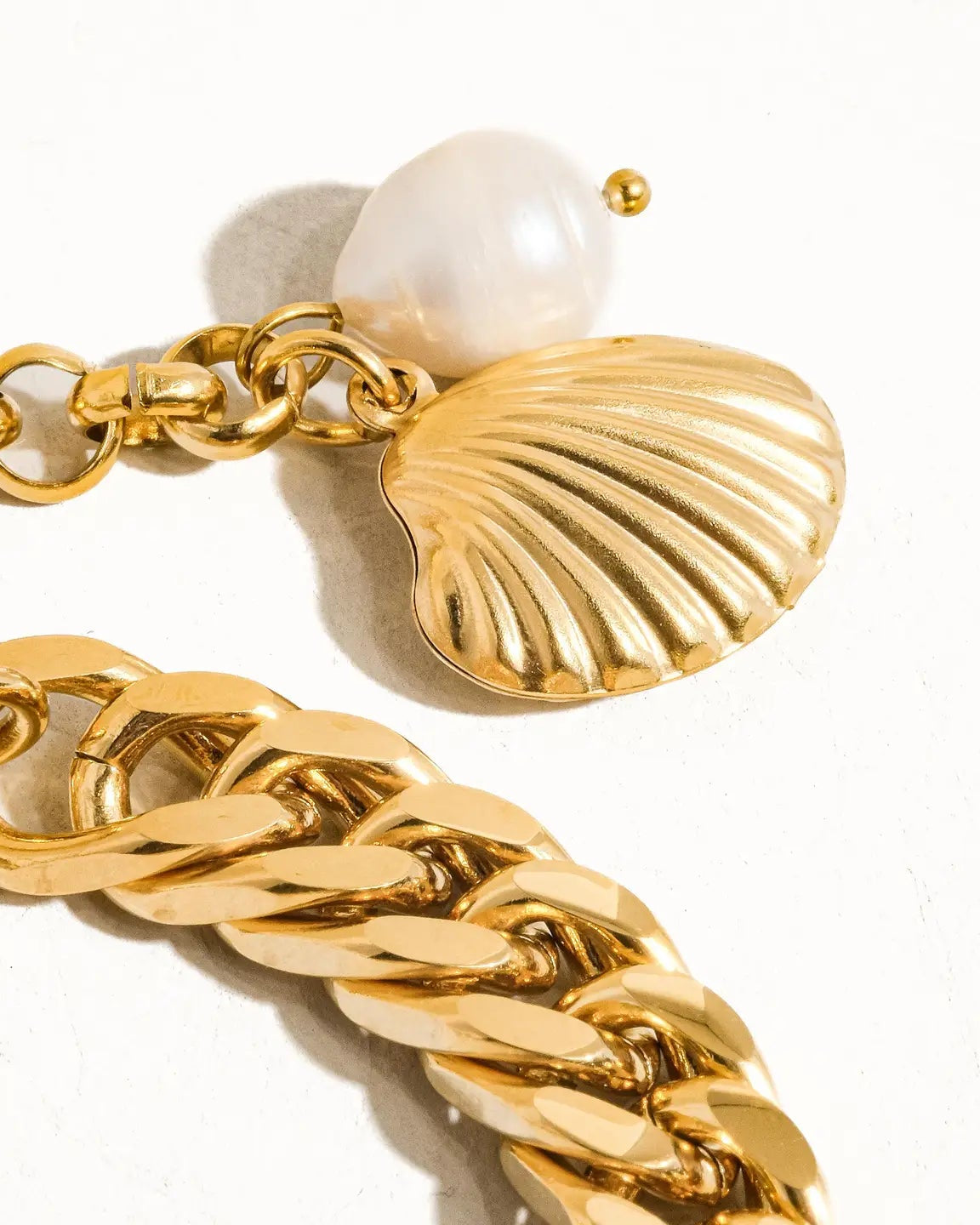 Tossa 18K Gold Non-Tarnish Shell Pearl Chain Bracelet