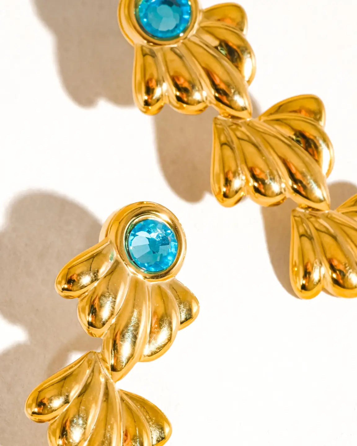 The Clay Earrings bring a touch of coastal charm to any look. Featuring luminous shell drops suspended from 18K gold non-tarnish hoops, these earrings blend natural texture with a refined finish — an easy go-to for day or night.