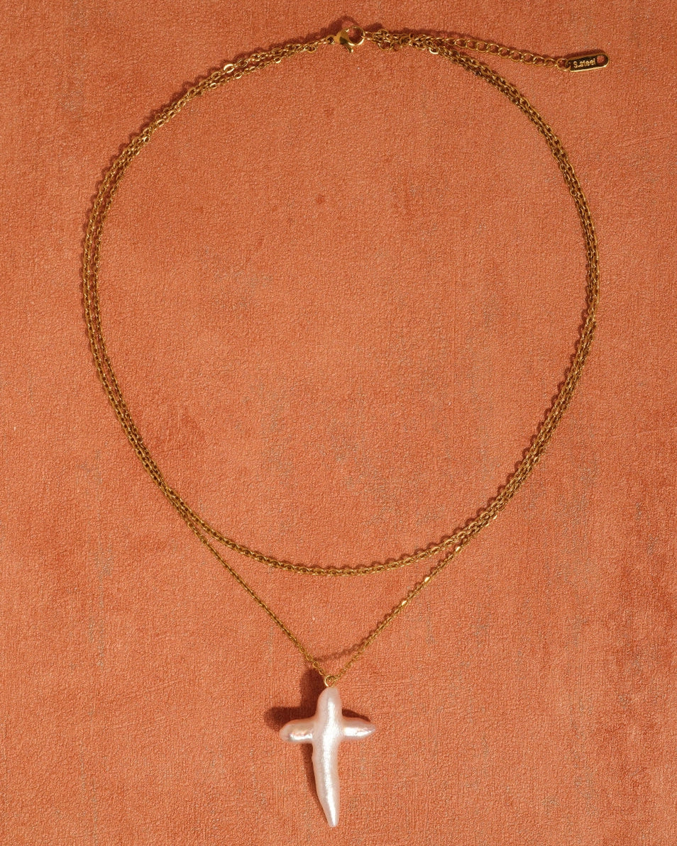 A timeless piece with a modern touch — the Aurise Necklace features a delicate freshwater pearl cross set on a sleek gold chain. Refined yet radiant, it’s the perfect blend of faith, fashion, and everyday elegance.