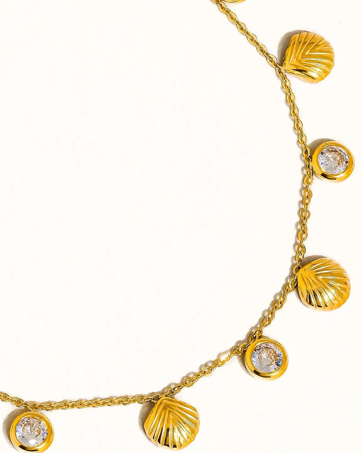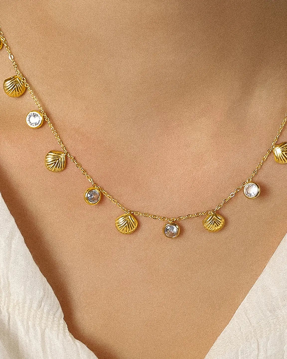 Sylvain 18K Gold Non-Tarnish Cz Shell Charm Necklace