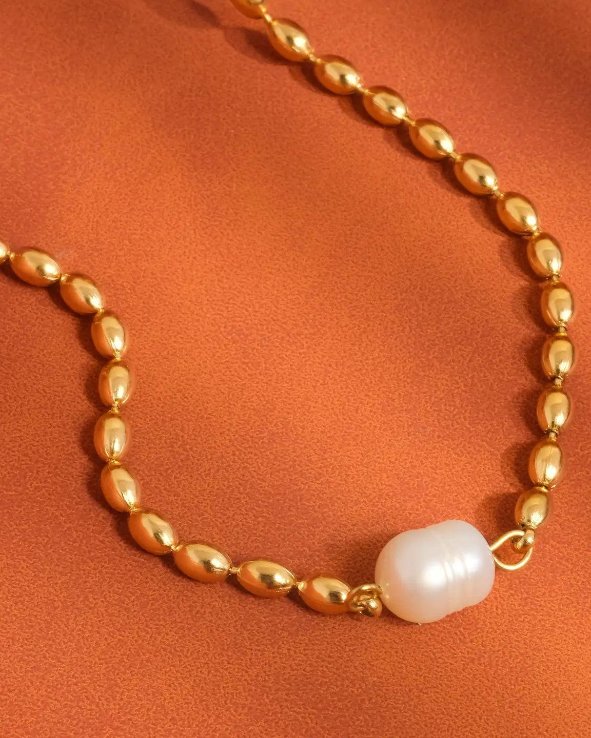 Vigne 18K Gold Non-Tarnish Pearl Ball Chain Necklace
