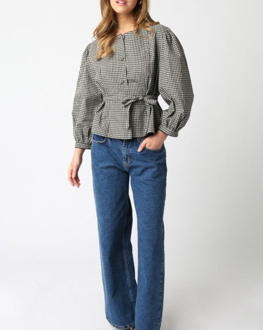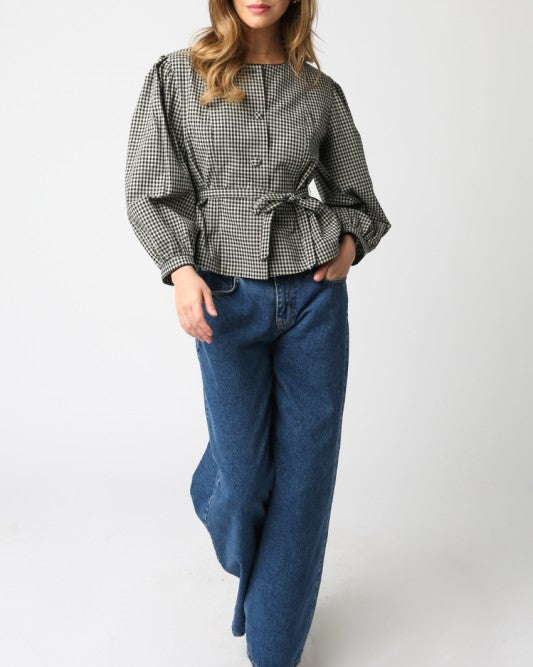 Our Maia Checkered Shirt is an effortless staple with a modern twist. Featuring a classic button-down front and an adjustable waistband for a flattering fit, this woven linen-cotton blend brings a soft, breathable feel and timeless checkered pattern to your everyday look.