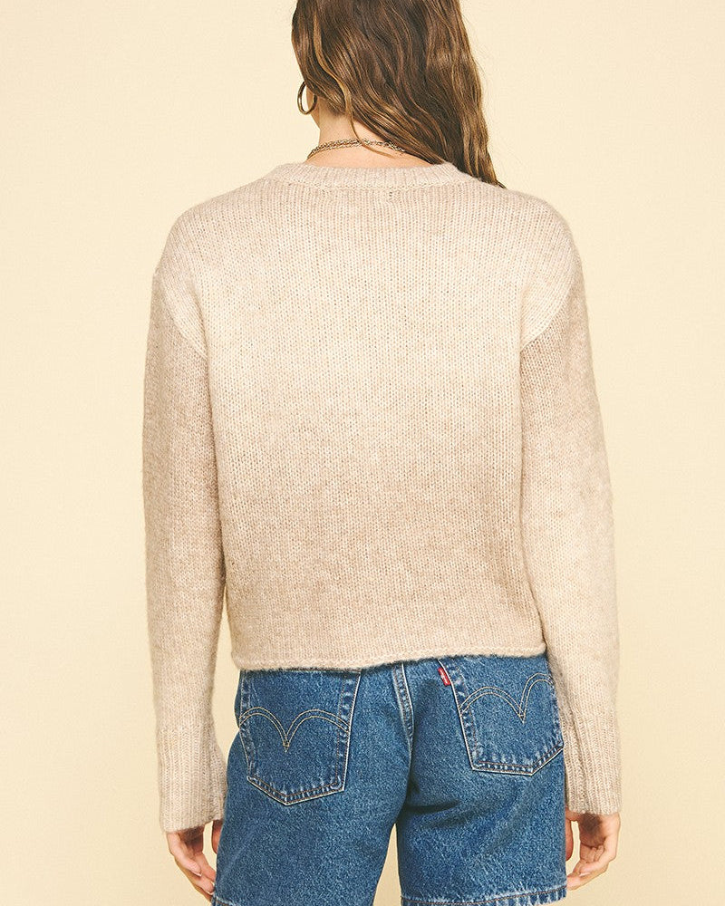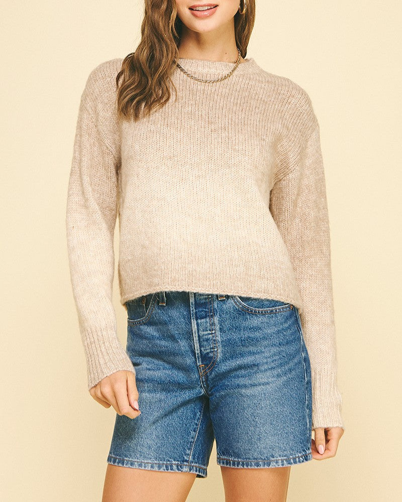 An effortless layer with a soft, tonal finish. This crew neck sweater is designed with long sleeves, drop shoulders, and a relaxed silhouette for easy wear. The subtle gradient knit in oatmeal adds depth and texture, making it a versatile piece to dress up or down.