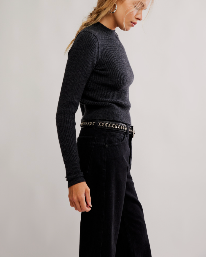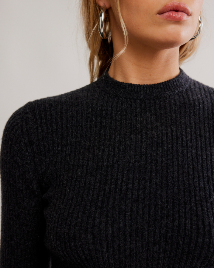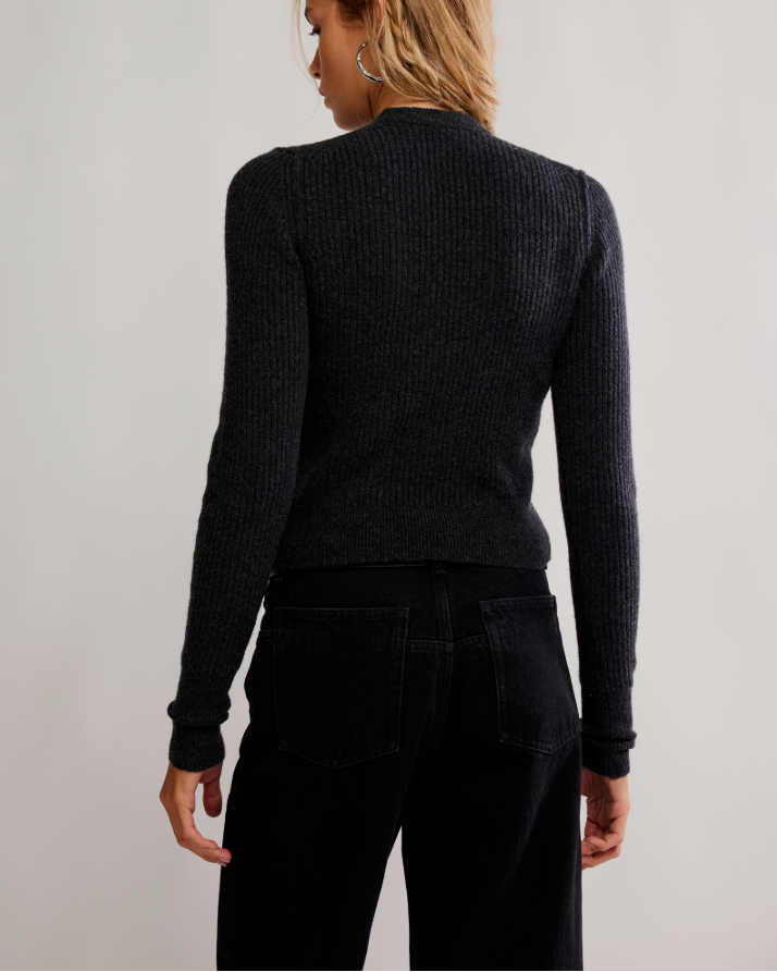 A timeless rib-knit essential, this fitted crewneck sweater brings a sleek, minimal silhouette to your everyday wardrobe. Soft with subtle stretch, it contours comfortably without feeling tight—perfect for layering or wearing solo. Finished with clean lines and a classic shape, it’s the cool-weather basic you’ll reach for again and again.