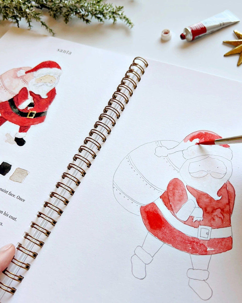 The Christmas Watercolor Workbook includes 12 Christmas-themed illustrations with an example of the finished painting, step-by-step instructions, and a lightly illustrated sketch for you to paint. It's just like a coloring book, but with watercolor! Enjoy this peaceful painting hobby on your own, with children, or with friends. Makes a wonderful gift and is perfect for artists of any age.