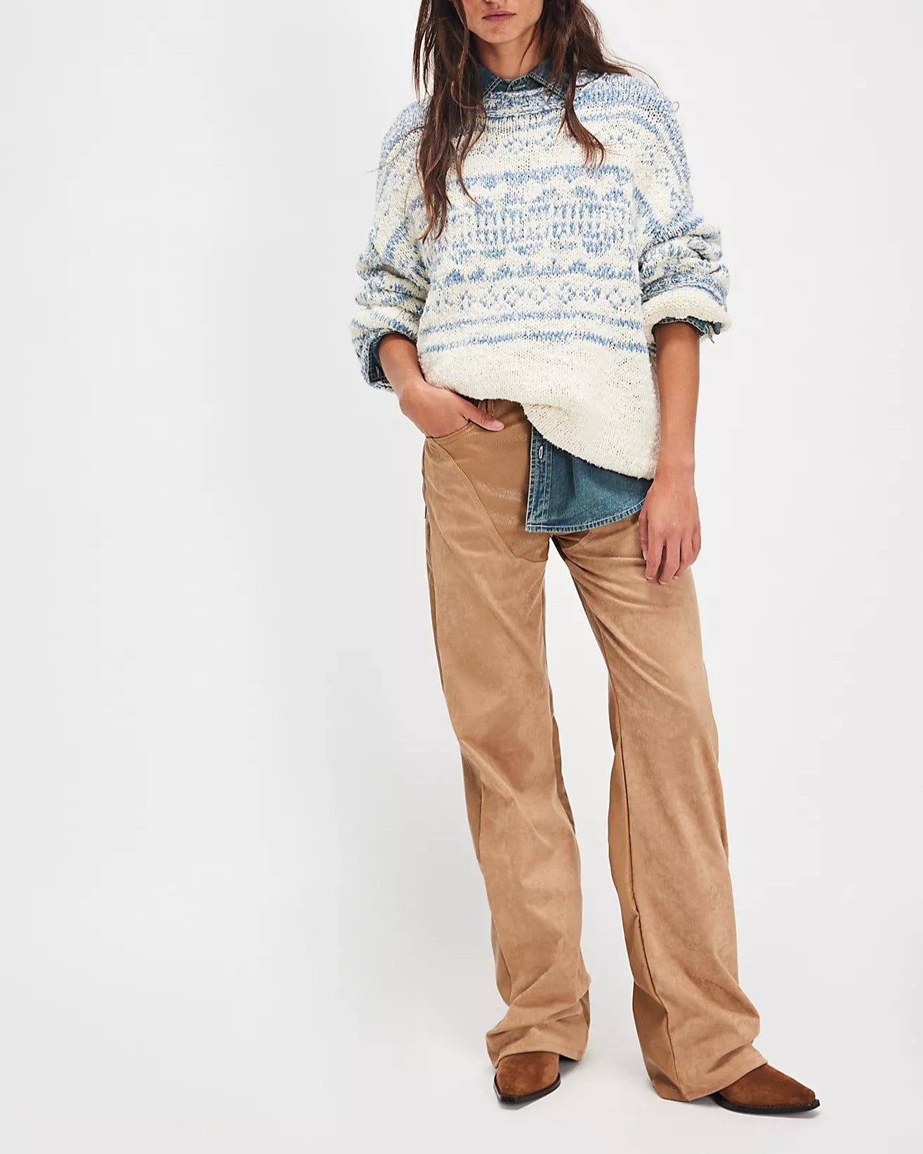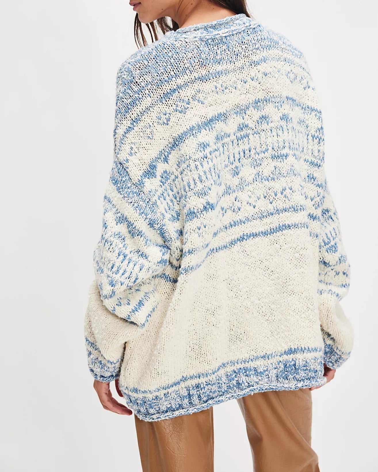Effortless comfort meets timeless style in this cozy long-sleeve sweater. Designed with a slouchy, oversized fit and chunky knit texture, it’s finished with a classic Fair Isle-inspired pattern for a touch of charm. The cotton-blend fabrication makes it soft and breathable—perfect for layering all season long.