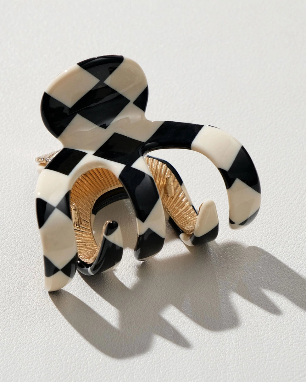 A modern take on the classic claw, the Jade Vintage features our signature octopus claw design for a secure yet comfortable hold. Crafted with a durable alloy base and finished with an eco-friendly cellulose acetate layer, this 2-inch claw blends strength and style—perfect for medium to long hair. Available in rich fall prints: Checkmate, Jade Green, and Deep Tortoise.