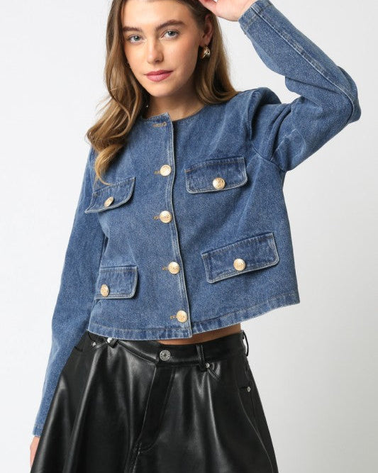 Meet the Keyla Denim Jacket—a fresh take on a classic, designed with a clean round neckline and a timeless button-down front. Its soft cotton denim makes it an easy everyday layer, perfect for pairing with tees, dresses, or your favorite basics.