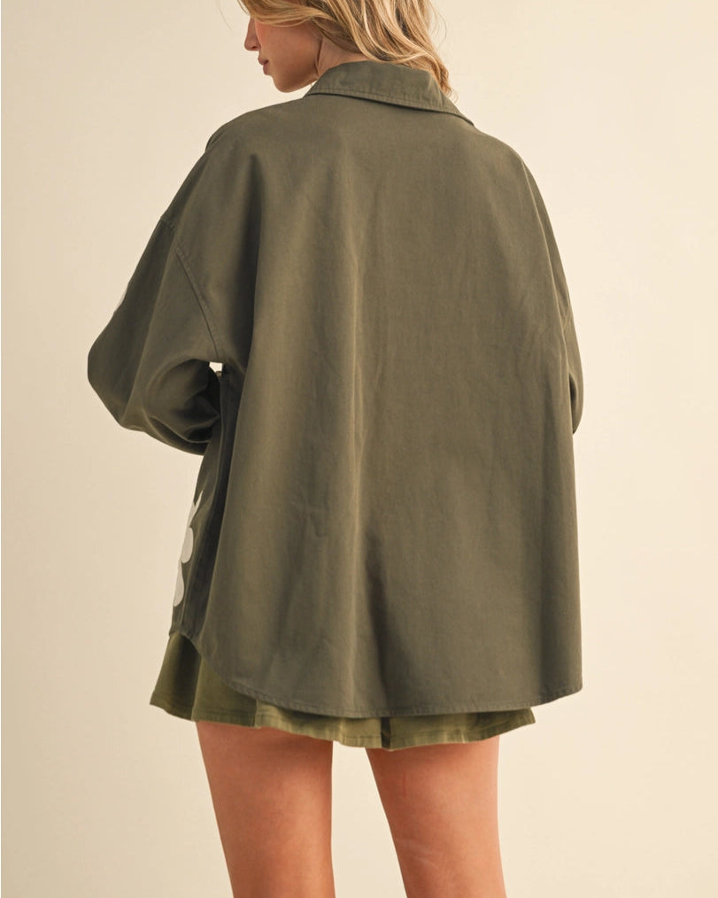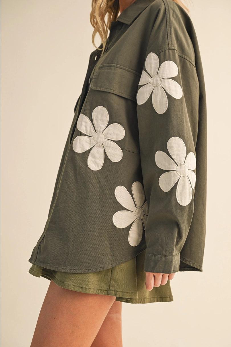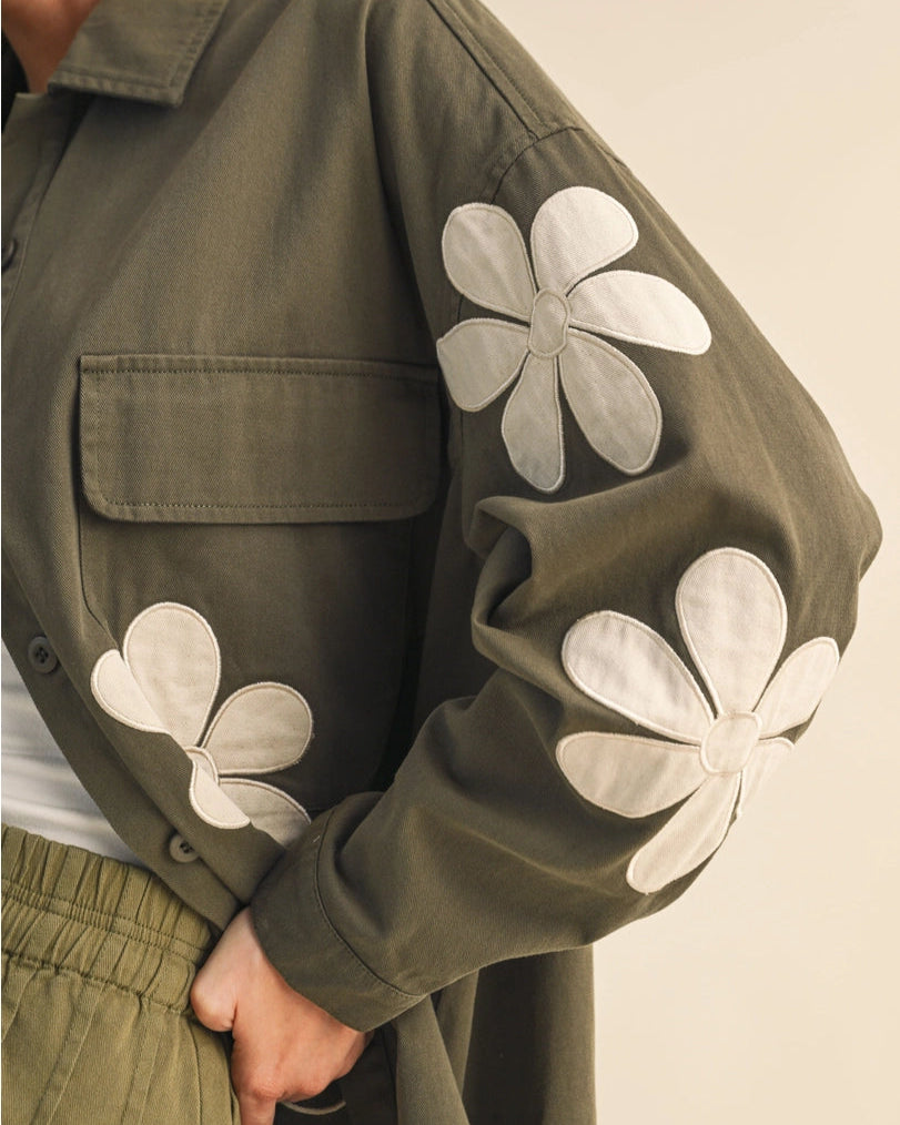 Mere Flower Patch Chest Pocket Oversized Shacket
