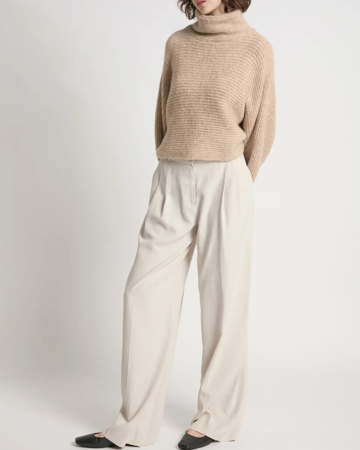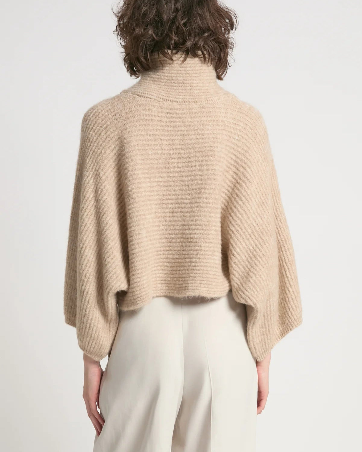 Modern shape meets cozy comfort. This cropped sweater features a turtleneck, cocoon sleeves, and a relaxed kimono-inspired silhouette. Vertical rib detailing and a soft brushed knit make it effortlessly chic and comfortable. One size fits women US 0–10.